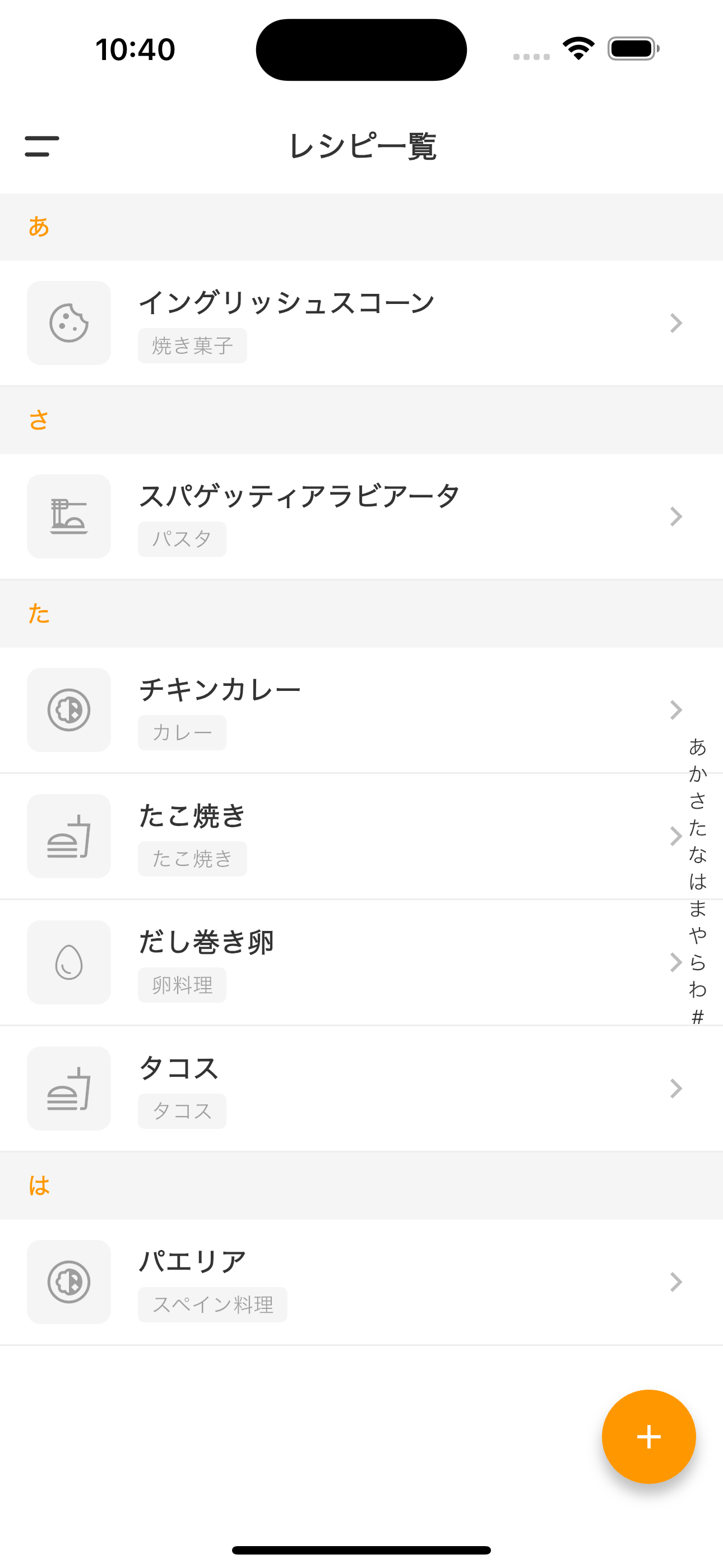 Sort freely by alphabetical order, category, or registration date. Quickly access your desired recipe with the index bar.